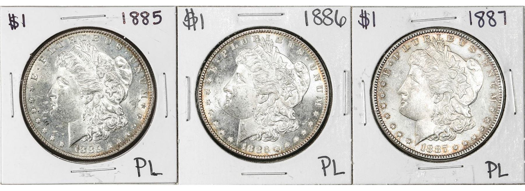 Lot of 1885-1887 $1 Morgan Silver Dollar Coins Proof Like