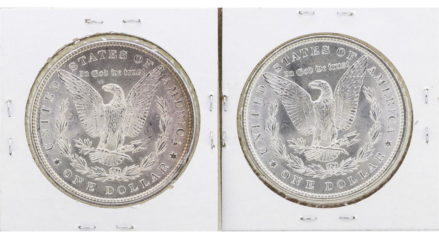 One Lot of 1885 & 1887 $1 Morgan Silver Dollar Coins.