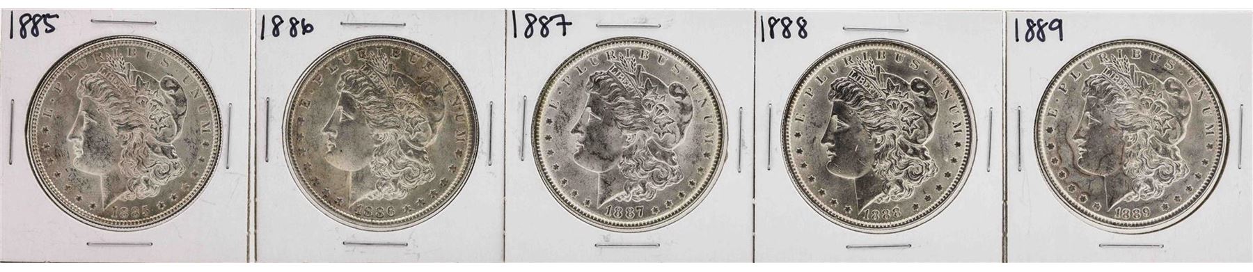 One Lot of 1885-1889 $1 Morgan Silver Dollar Coins.