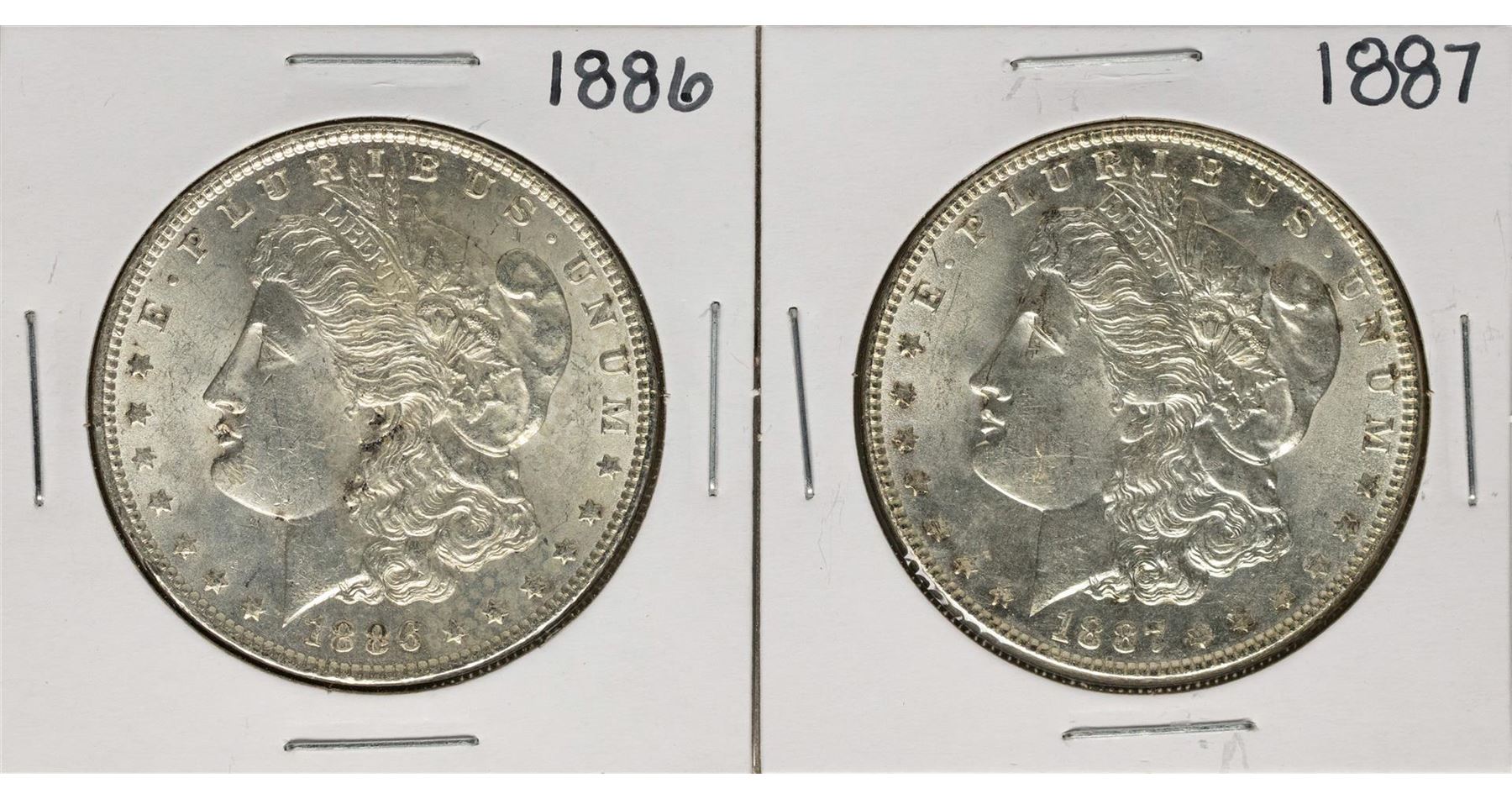 One Lot of 1886-1887 $1 Morgan Silver Dollar Coins.
