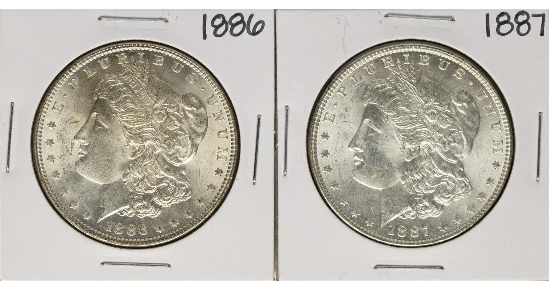 One Lot of 1886-1887 $1 Morgan Silver Dollar Coins.