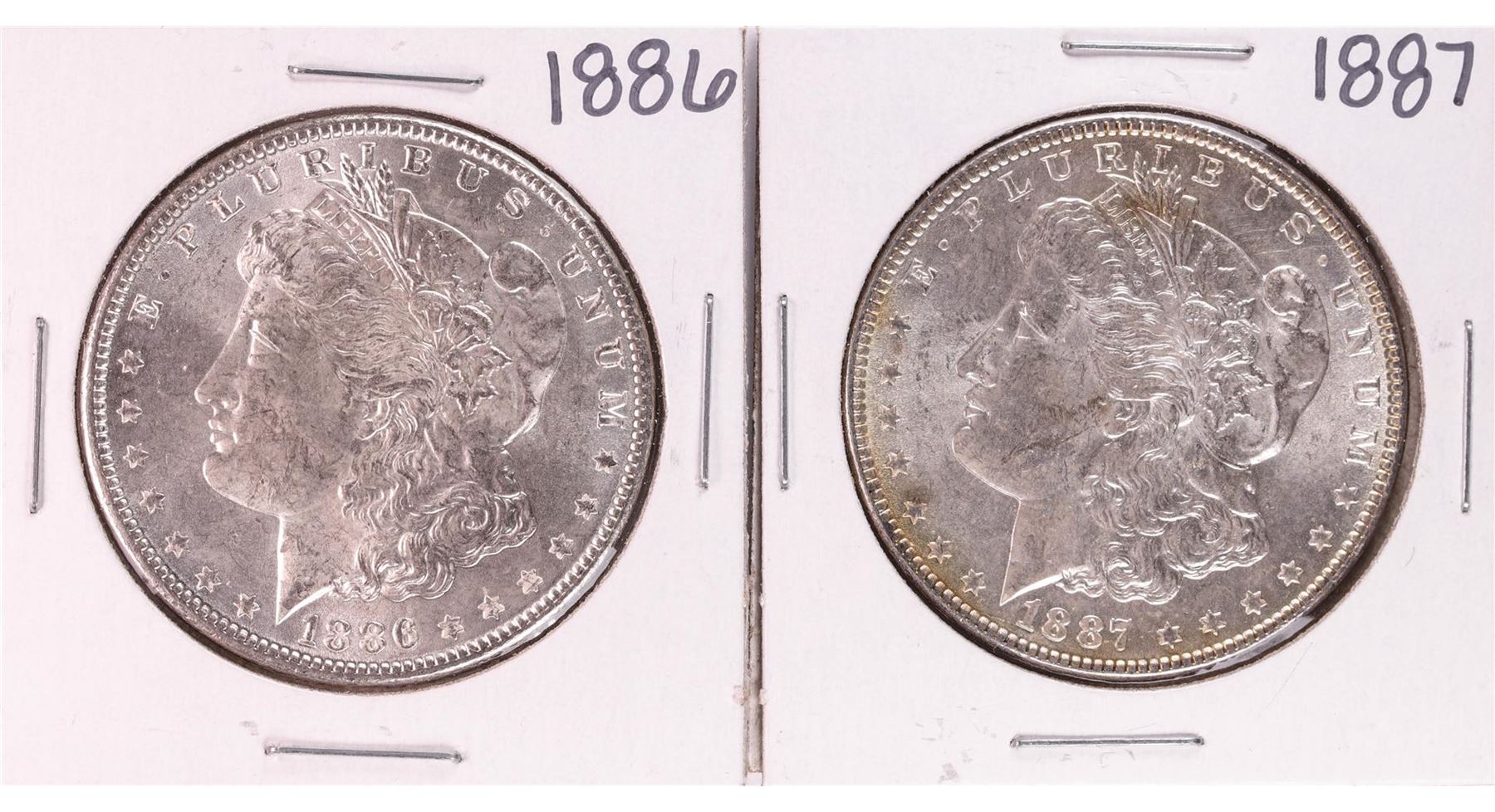 One Lot of 1886-1887 $1 Morgan Silver Dollar Coins.