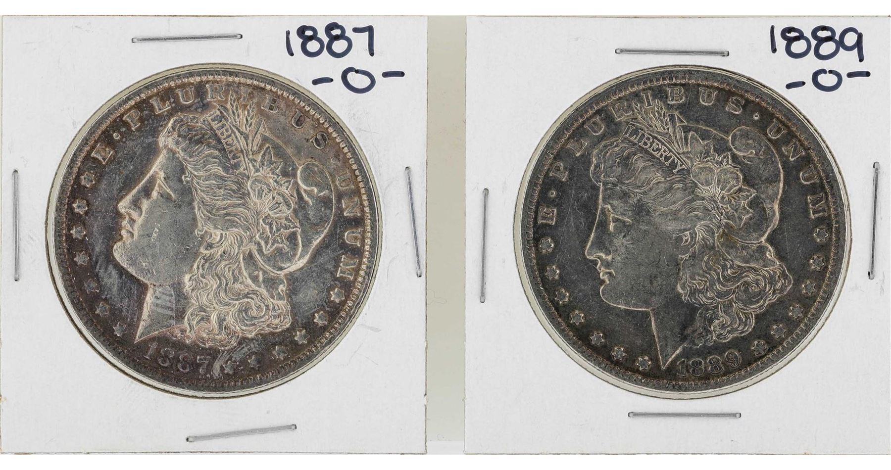 One Lot of 1887-O & 1889-O $1 Morgan Silver Dollar Coins.