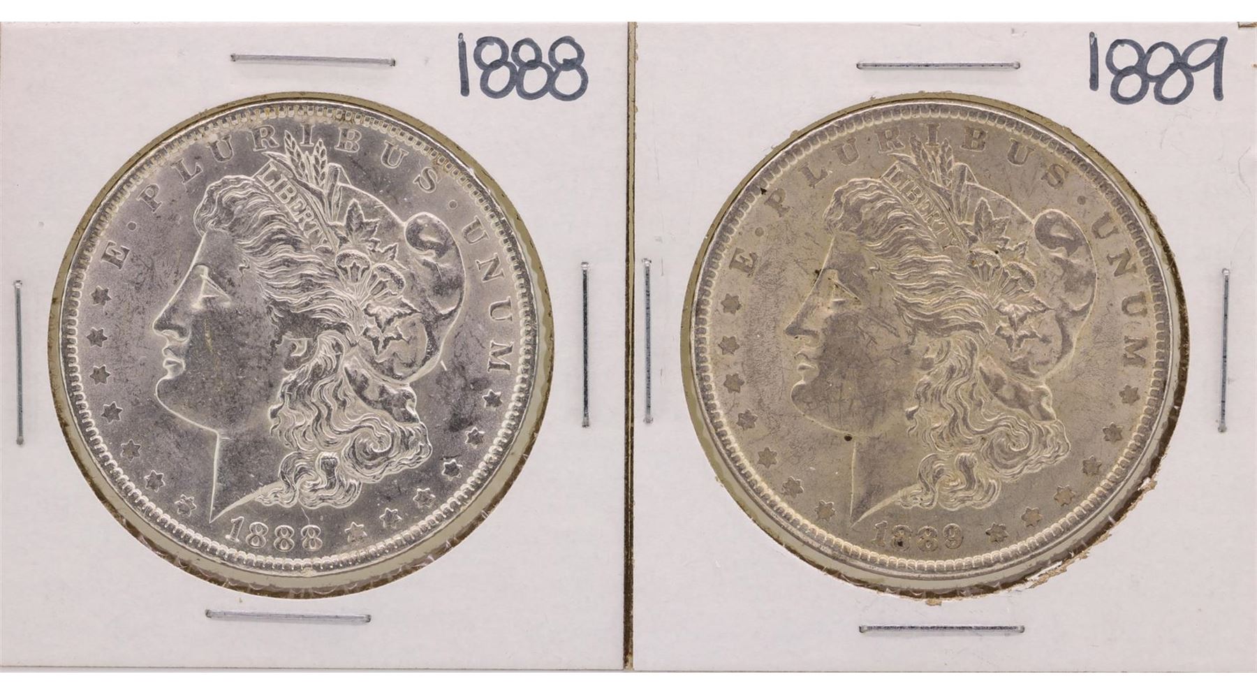 One Lot of 1888-1889 $1 Morgan Silver Dollar Coins.