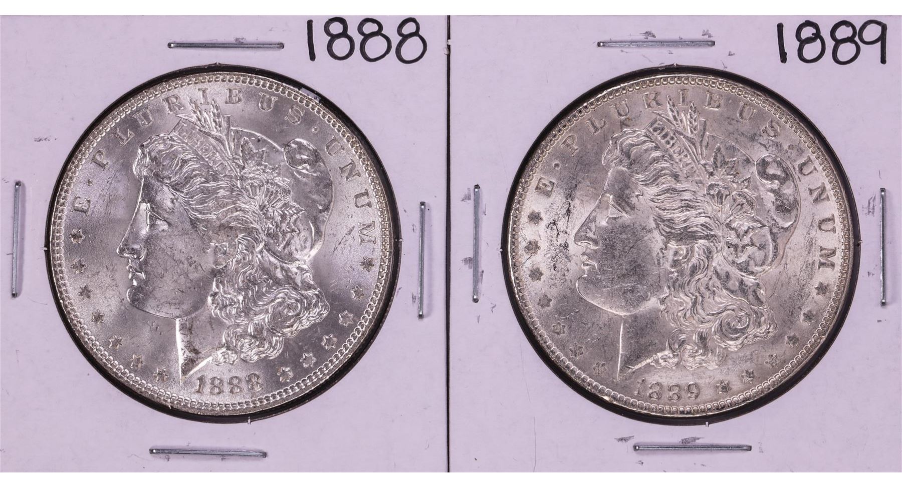 One Lot of 1888-1889 $1 Morgan Silver Dollar Coins.