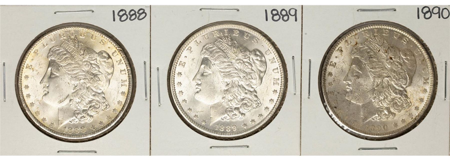 One Lot of 1888-1890 $1 Morgan Silver Dollar Coins.