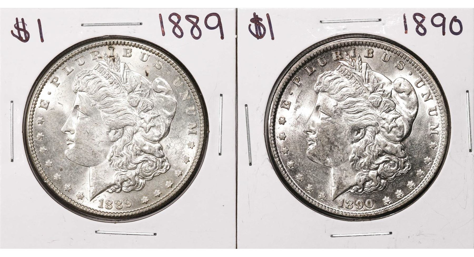One Lot of 1889-1890 $1 Morgan Silver Dollar Coins.