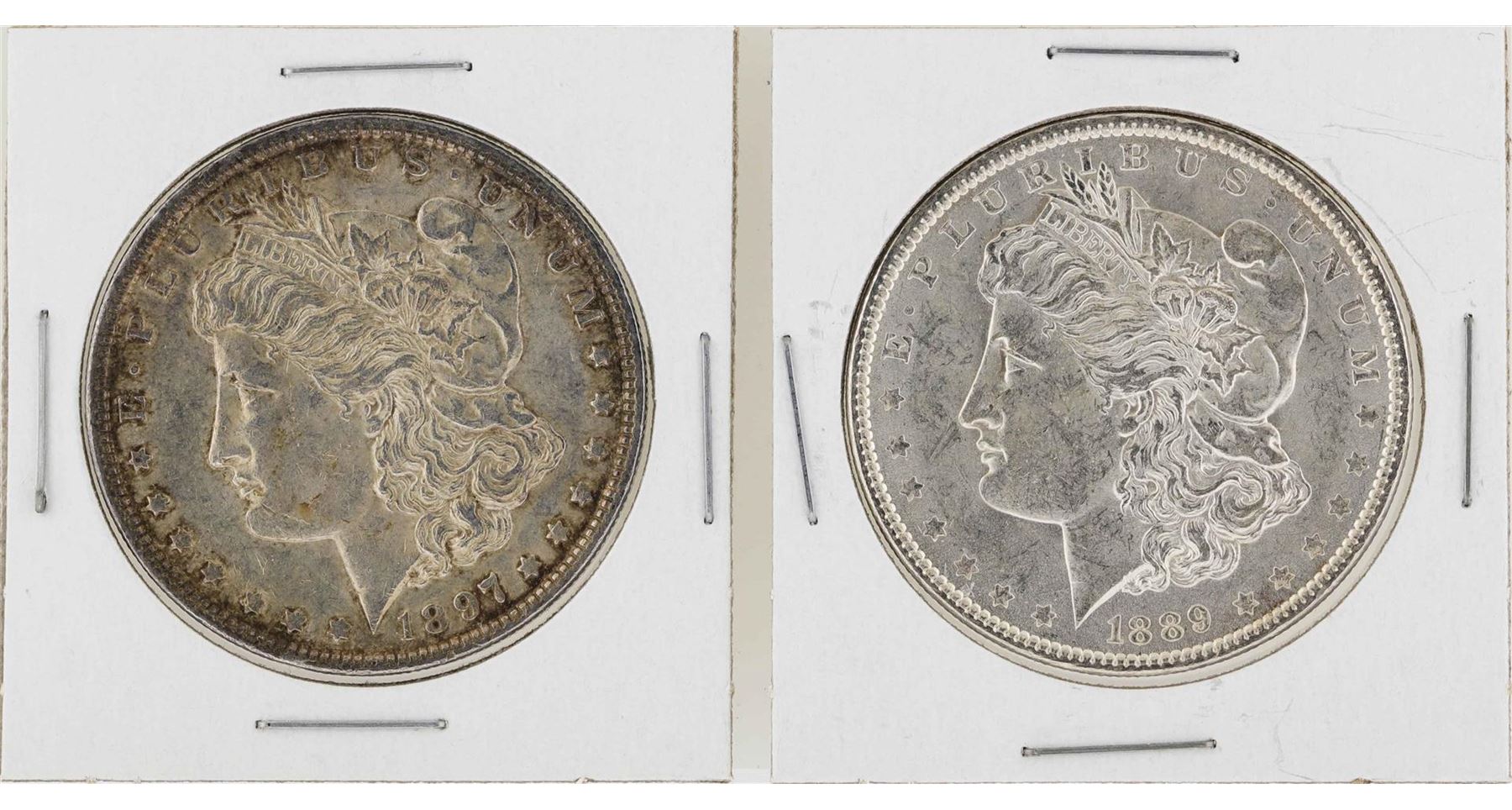 One Lot of 1889 & 1897 $1 Morgan Silver Dollar Coins.