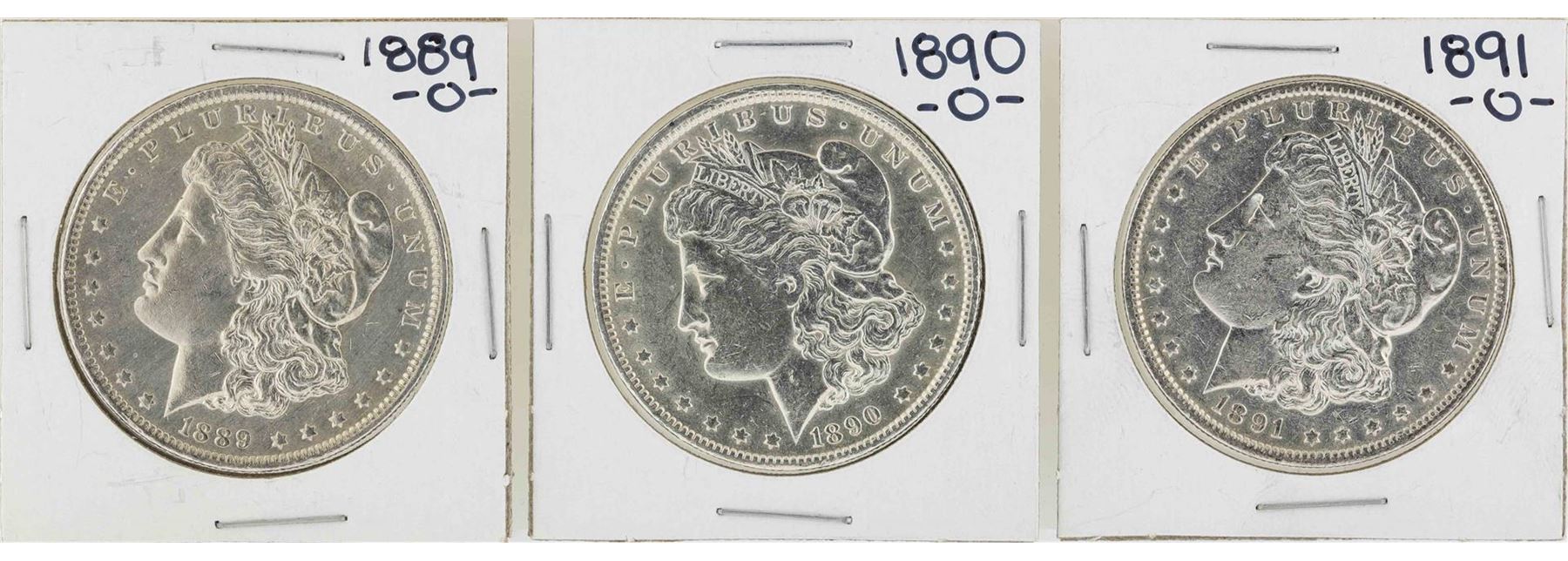 One Lot of 1889-O to 1891-O $1 Morgan Silver Dollar Coins.