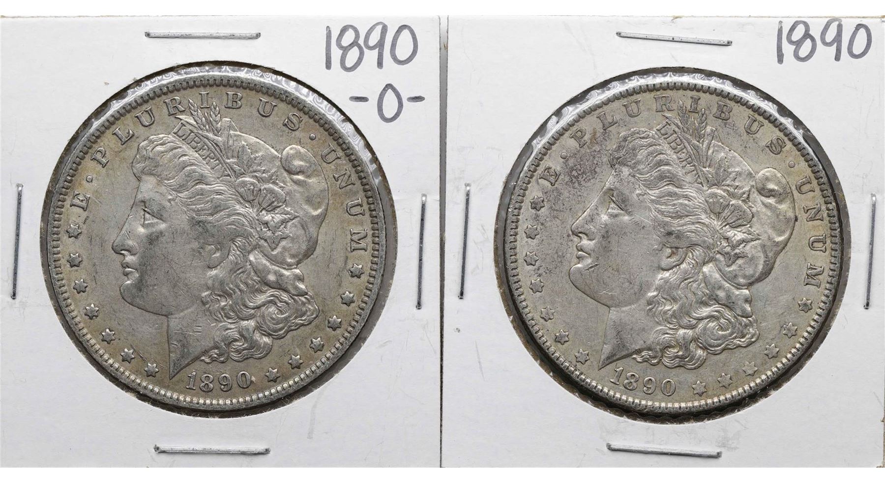 One Lot of 1890-O & 1890 $1 Morgan Silver Dollar Coins.