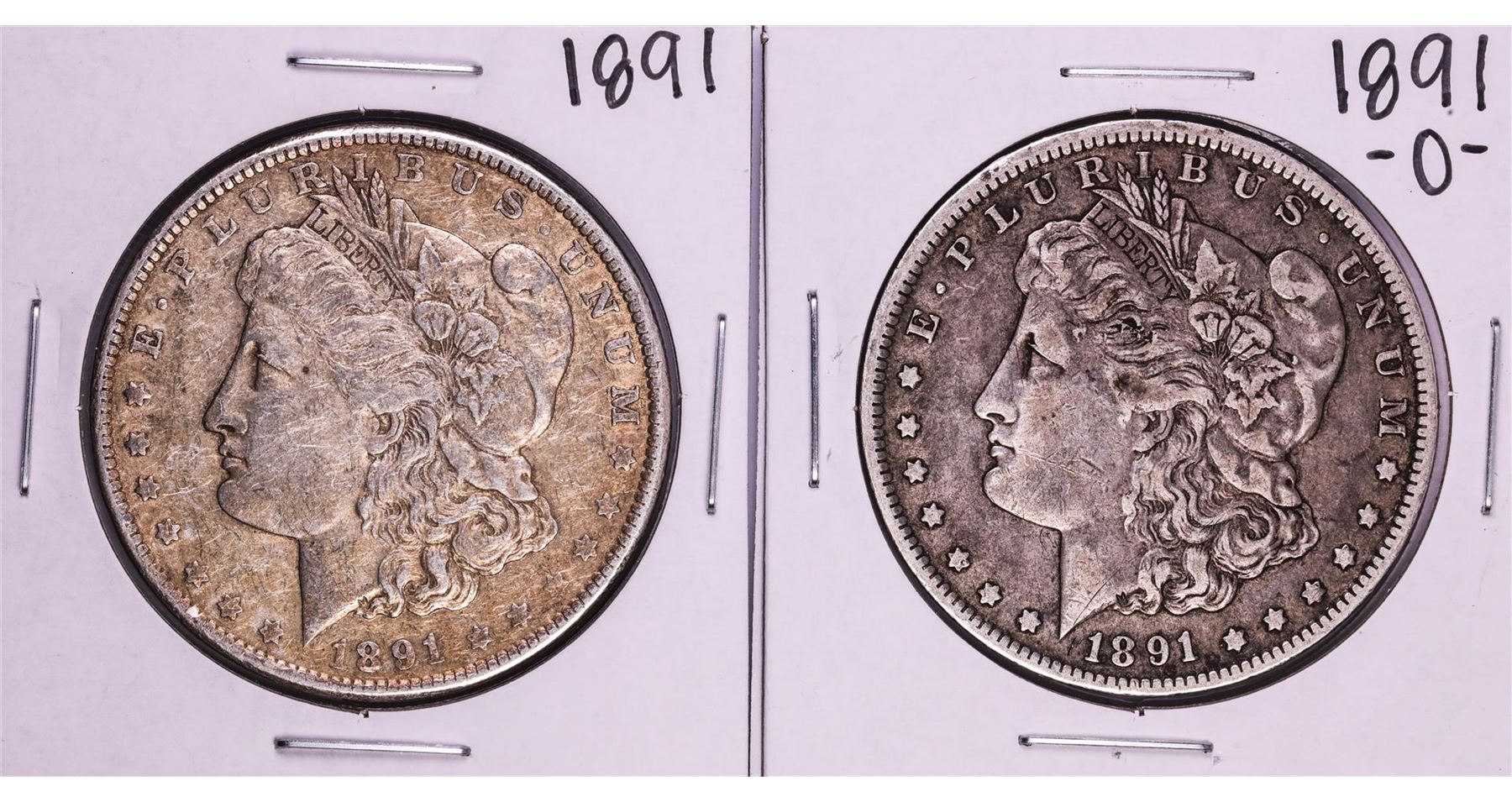 One Lot of 1891 & 1891-O $1 Morgan Silver Dollar Coins.