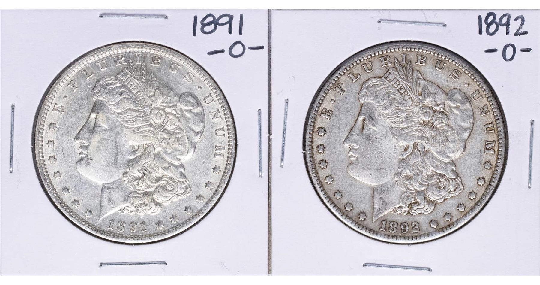 One Lot of 1891-O & 1892-O $1 Morgan Silver Dollar Coins.