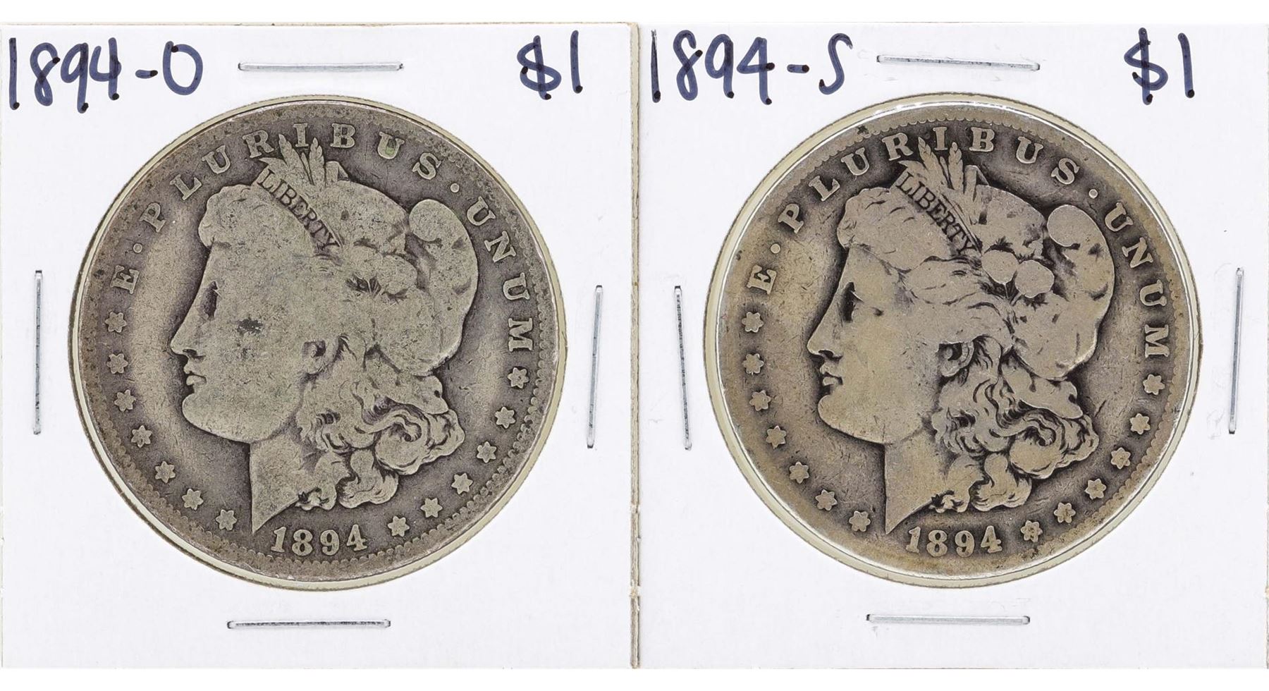 One Lot of 1894-O & 1894-S $1 Morgan Silver Dollar Coins.