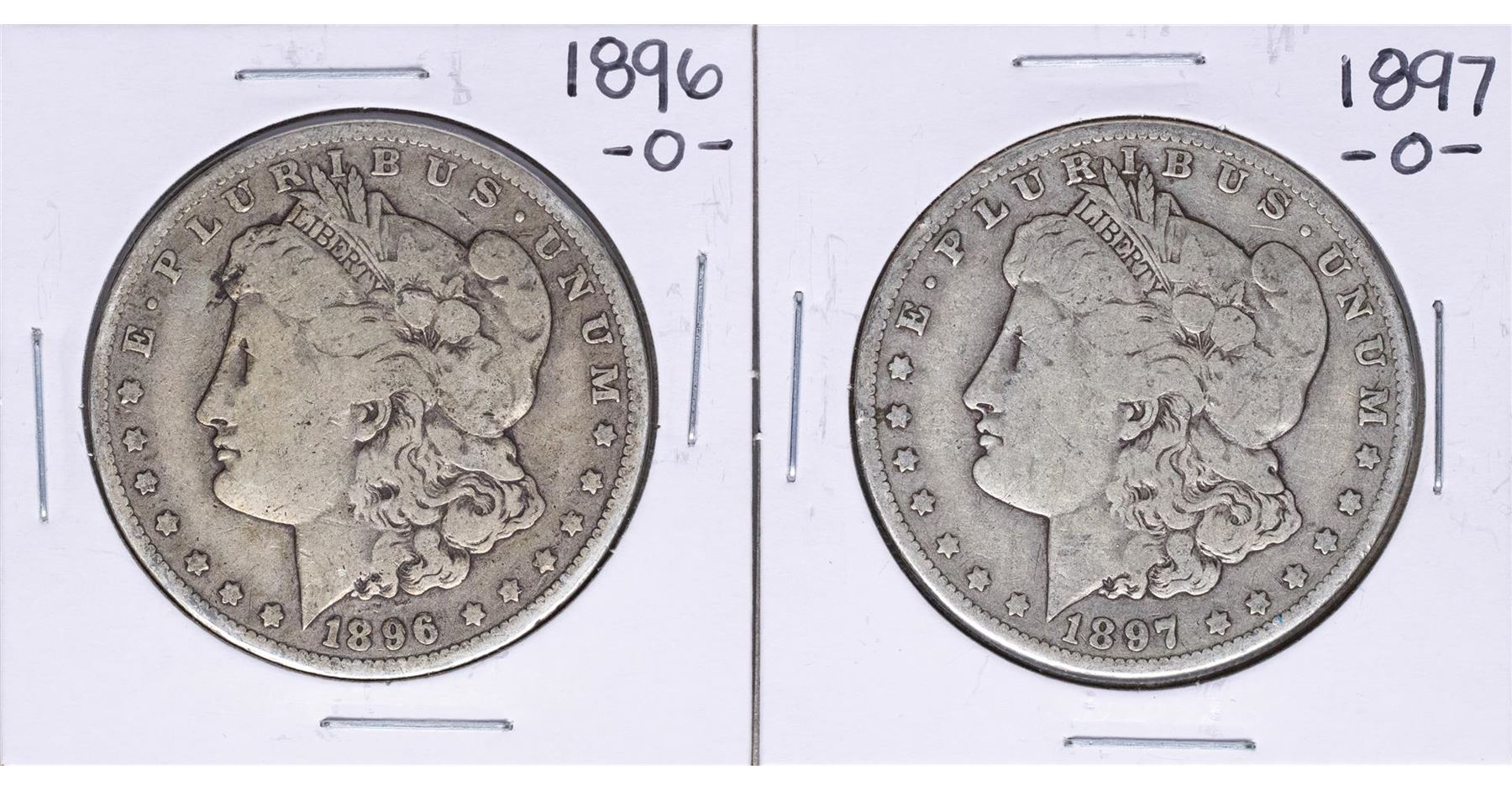 One Lot of 1896-O & 1897-O $1 Morgan Silver Dollar Coins.