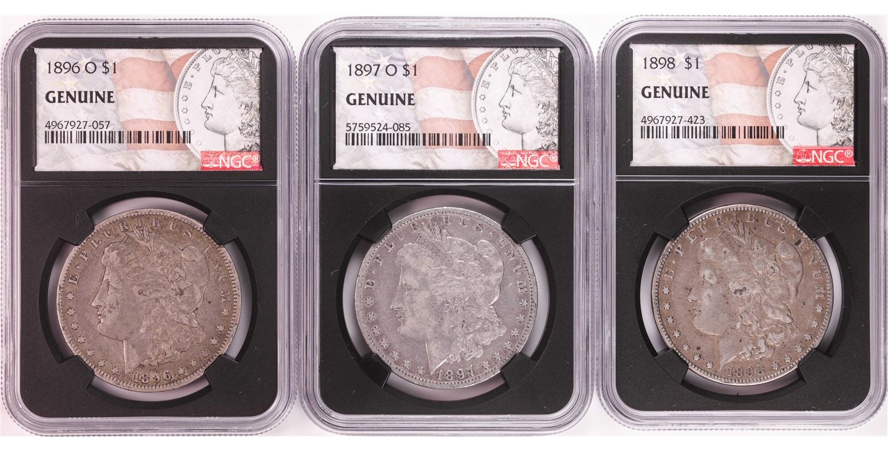 Lot of 1896-O, 1897-O, & 1898 $1 Morgan Silver Dollar Coins NGC Genuine
