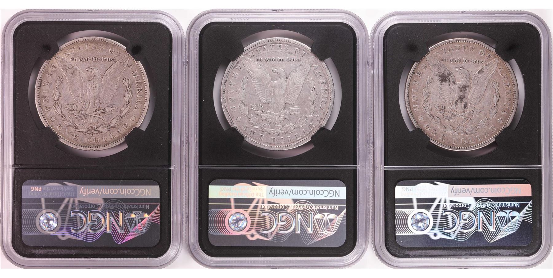 One Lot of 1896-O, 1897-O, & 1898 $1 Morgan Silver Dollar Coins NGC Genuine. NGC Certified.