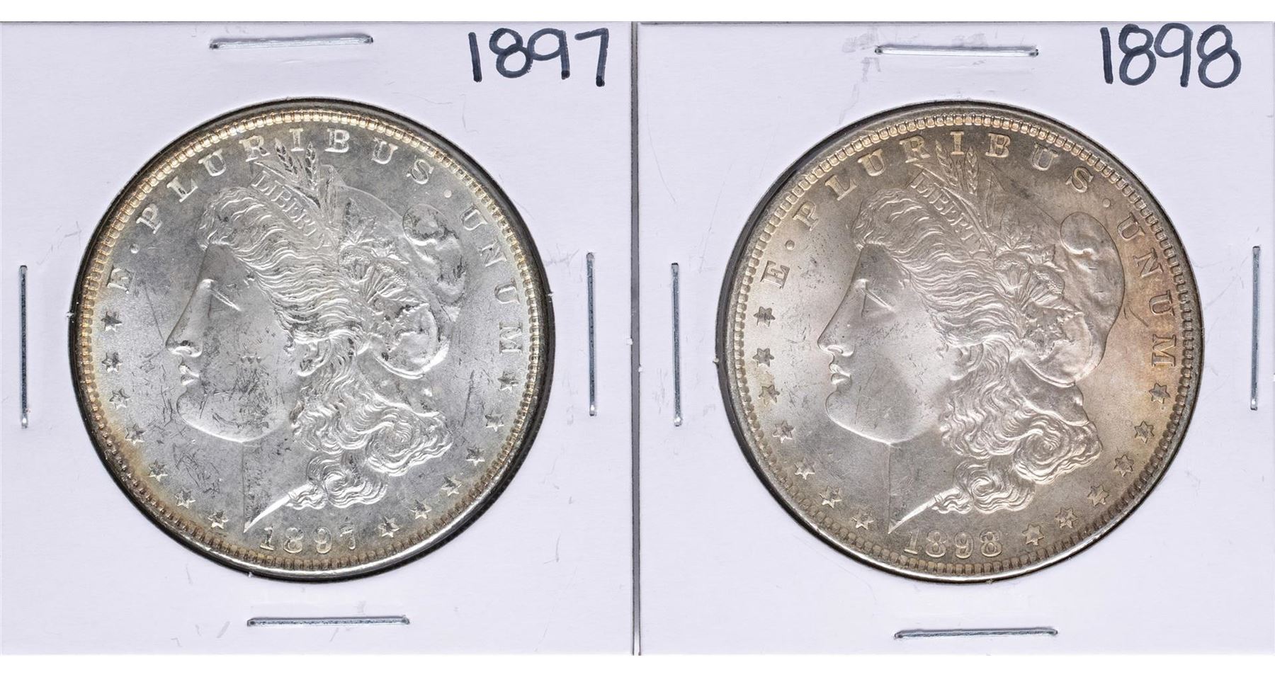 One Lot of 1897-1898 $1 Morgan Silver Dollar Coins.