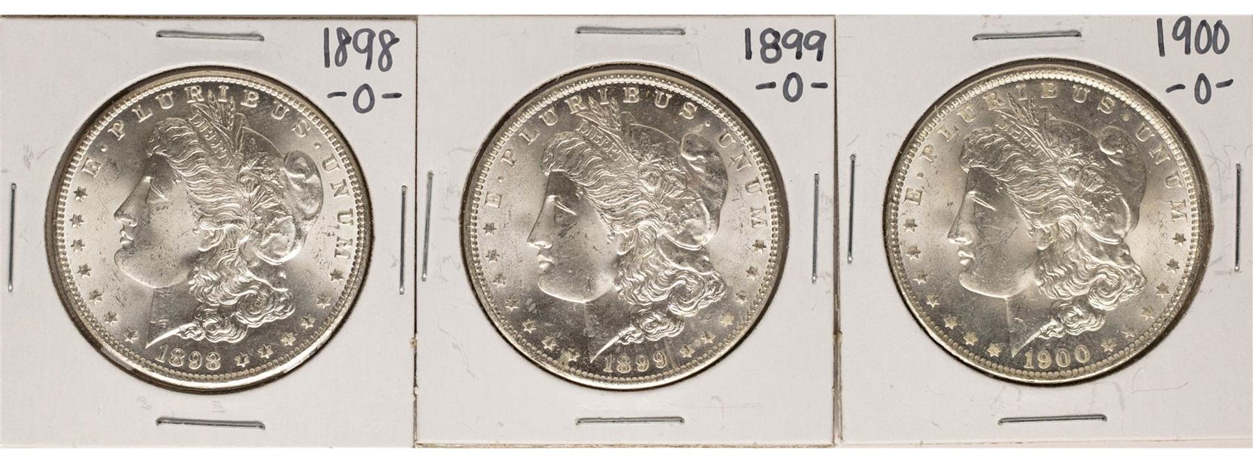 One Lot of 1898-O to 1900-O $1 Morgan Silver Dollar Coins.