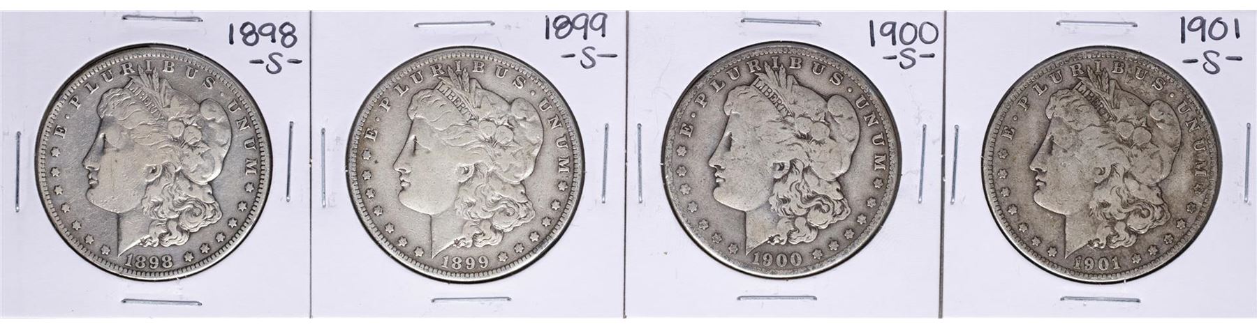 One Lot of 1898-S to 1901-S $1 Morgan Silver Dollar Coins.