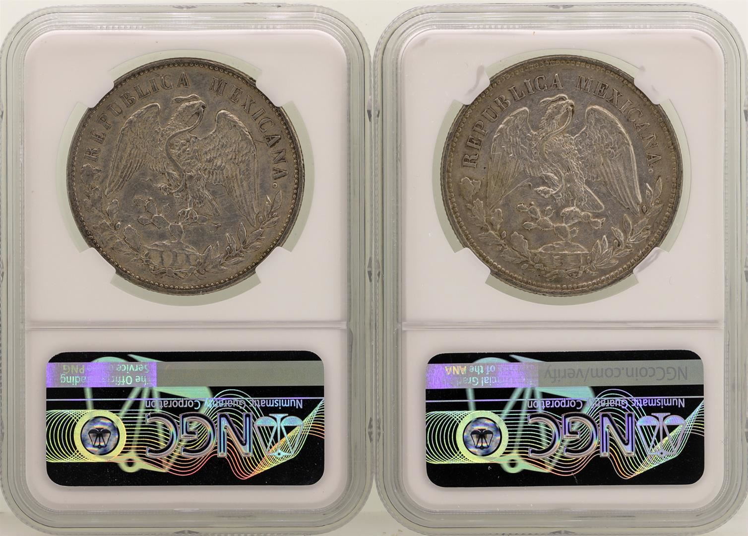 One Lot of 1898CN & 1904CN Mexico Pesos Silver Coins NGC Graded AU Details. NGC Certified.