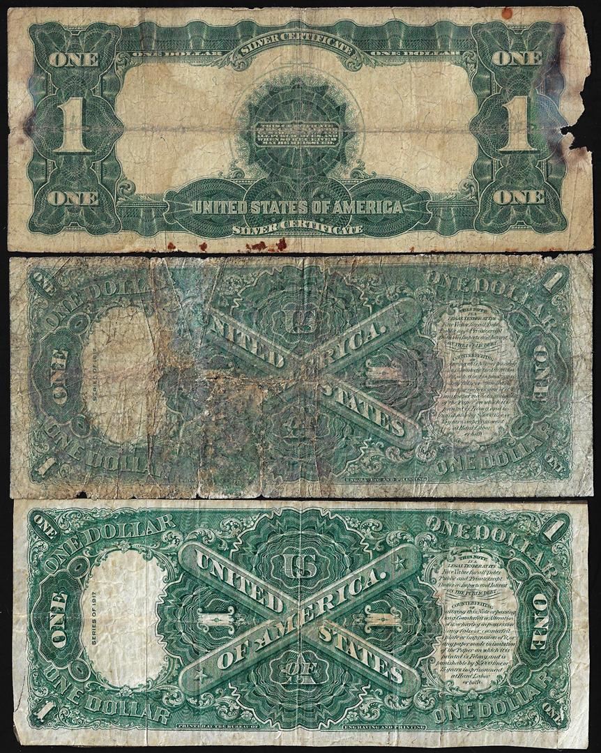 Lot of 1899 $1 Black Eagle Silver Certificate Note & (2) 1917 $1 Legal Tender Notes