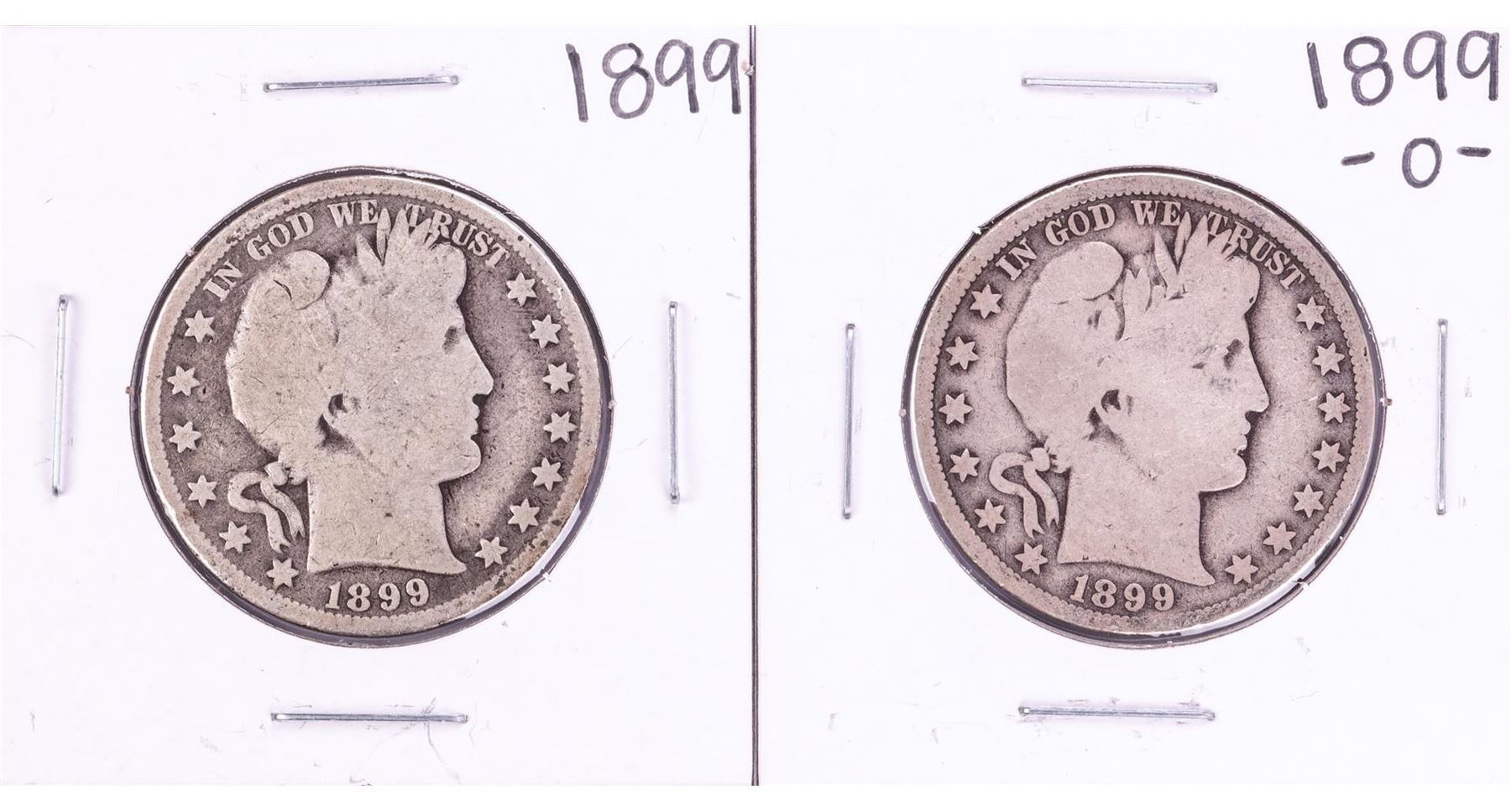 One Lot of 1899 & 1899-O Barber Half Dollar Coins.