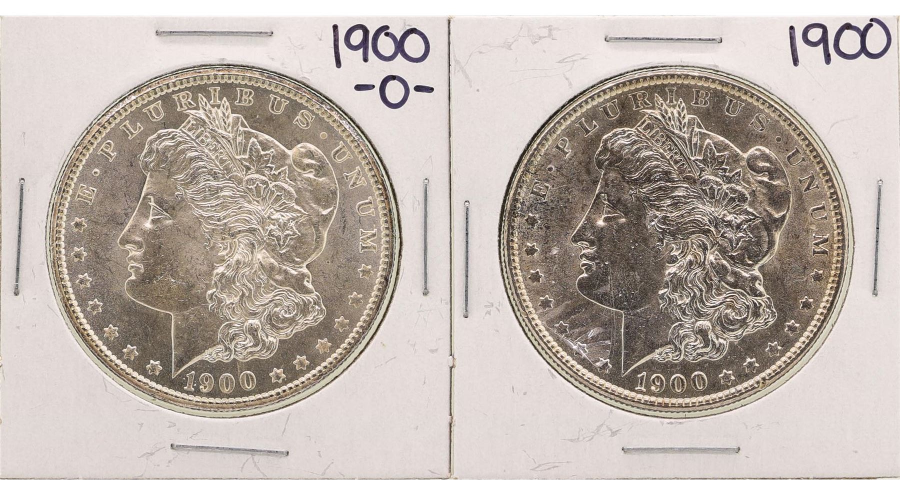 One Lot of 1900 & 1900-O $1 Morgan Silver Dollar Coins.