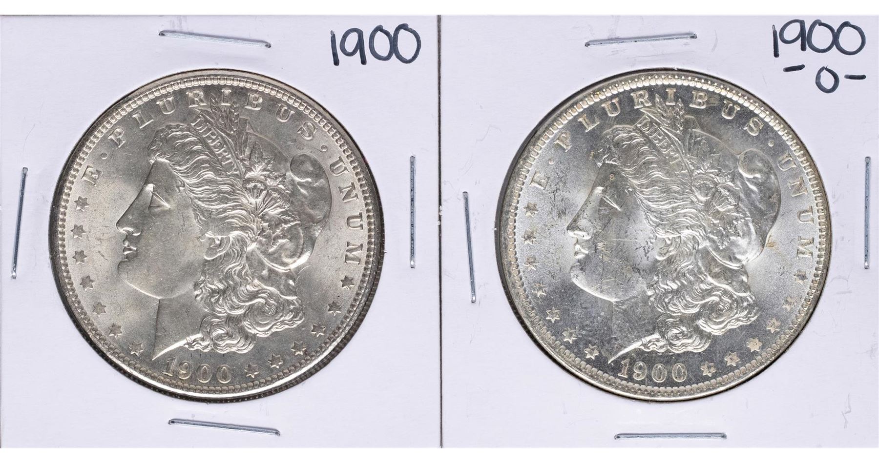 One Lot of 1900 & 1900-O $1 Morgan Silver Dollar Coins.