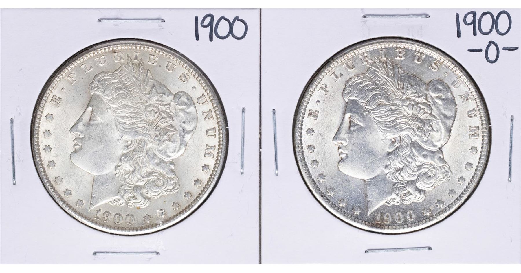 One Lot of 1900 & 1900-O $1 Morgan Silver Dollar Coins.