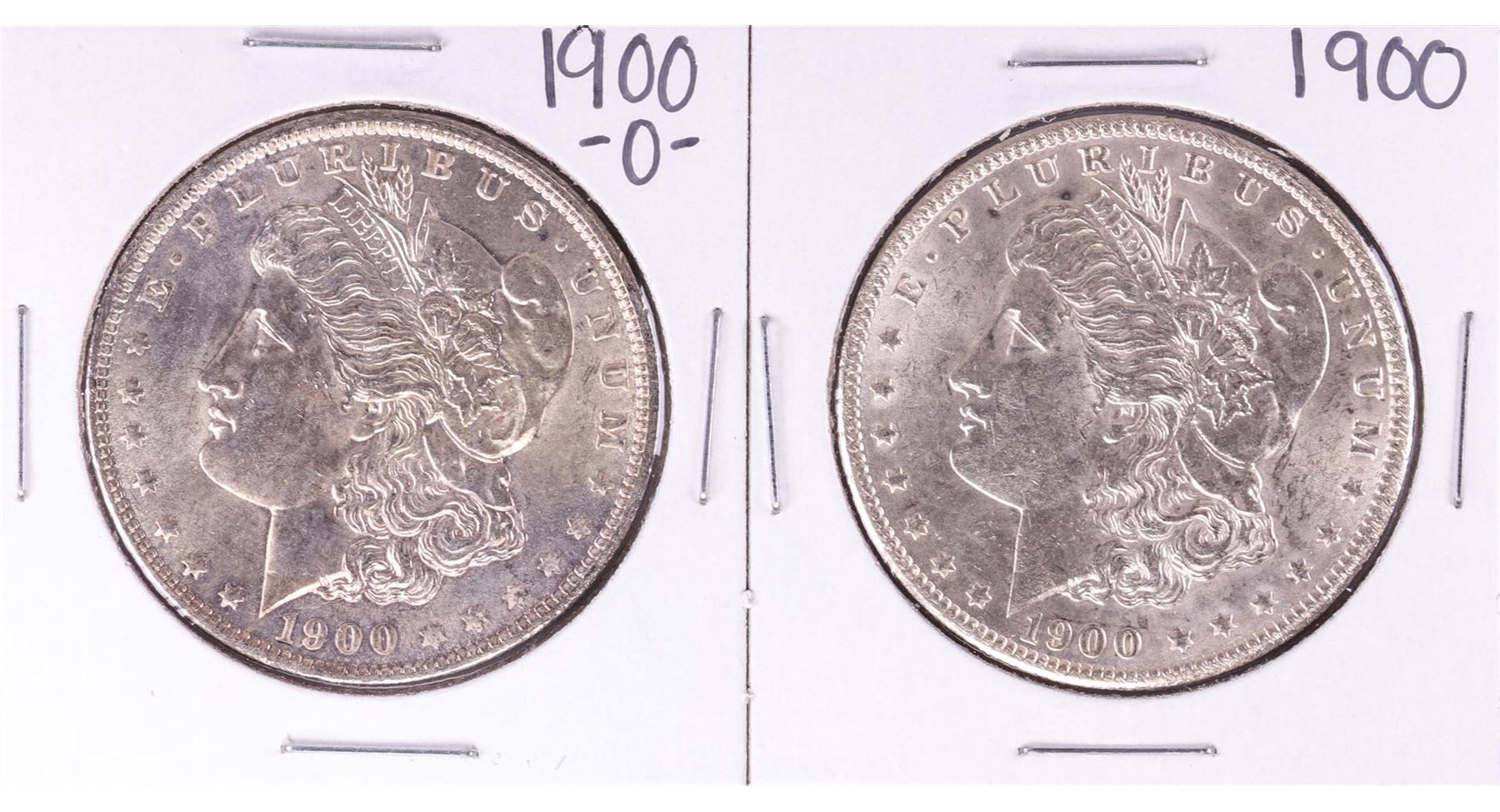 One Lot of 1900 & 1900-O $1 Morgan Silver Dollar Coins.
