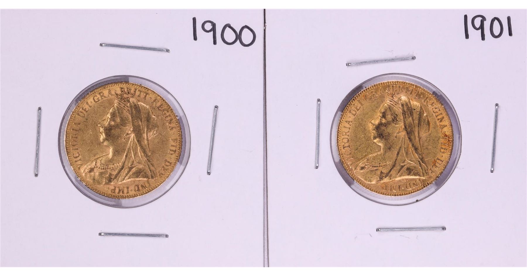One Lot of 1900-1901 Great Britain Sovereign Gold Coins.