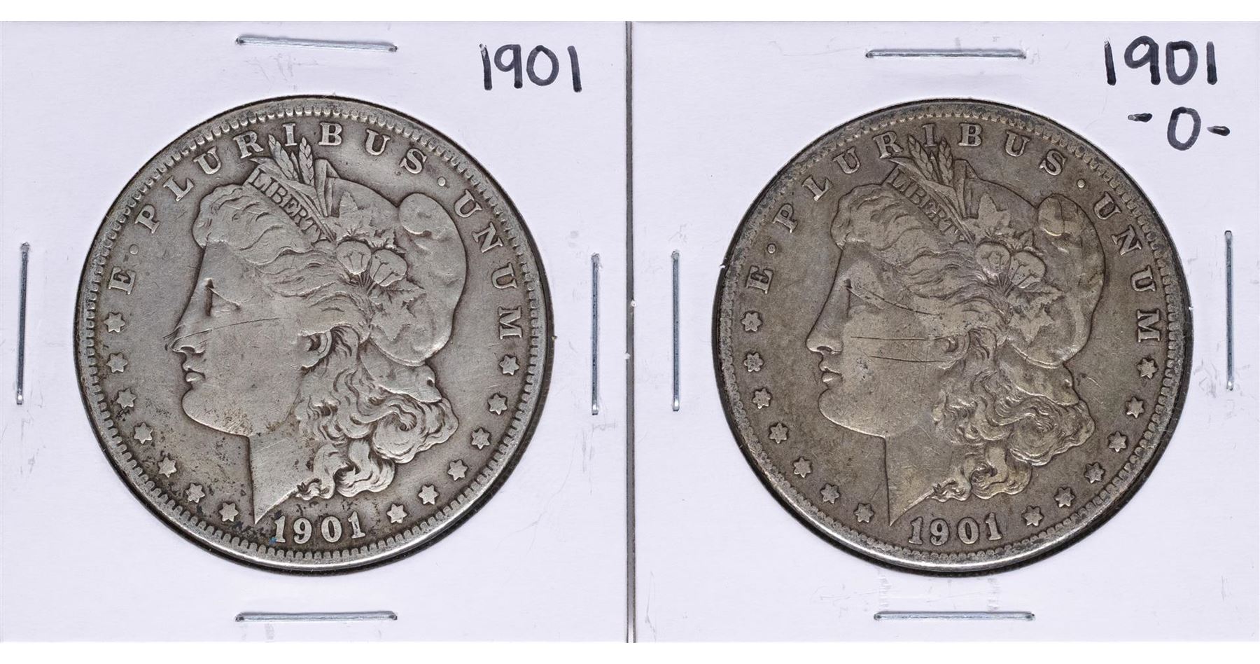 One Lot of 1901 & 1901-O $1 Morgan Silver Dollar Coins.