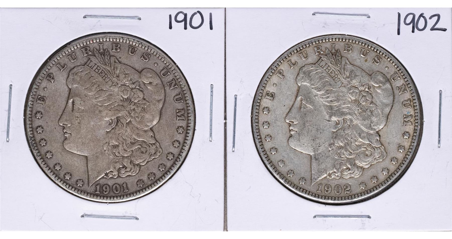 One Lot of 1901-1902 $1 Morgan Silver Dollar Coins.