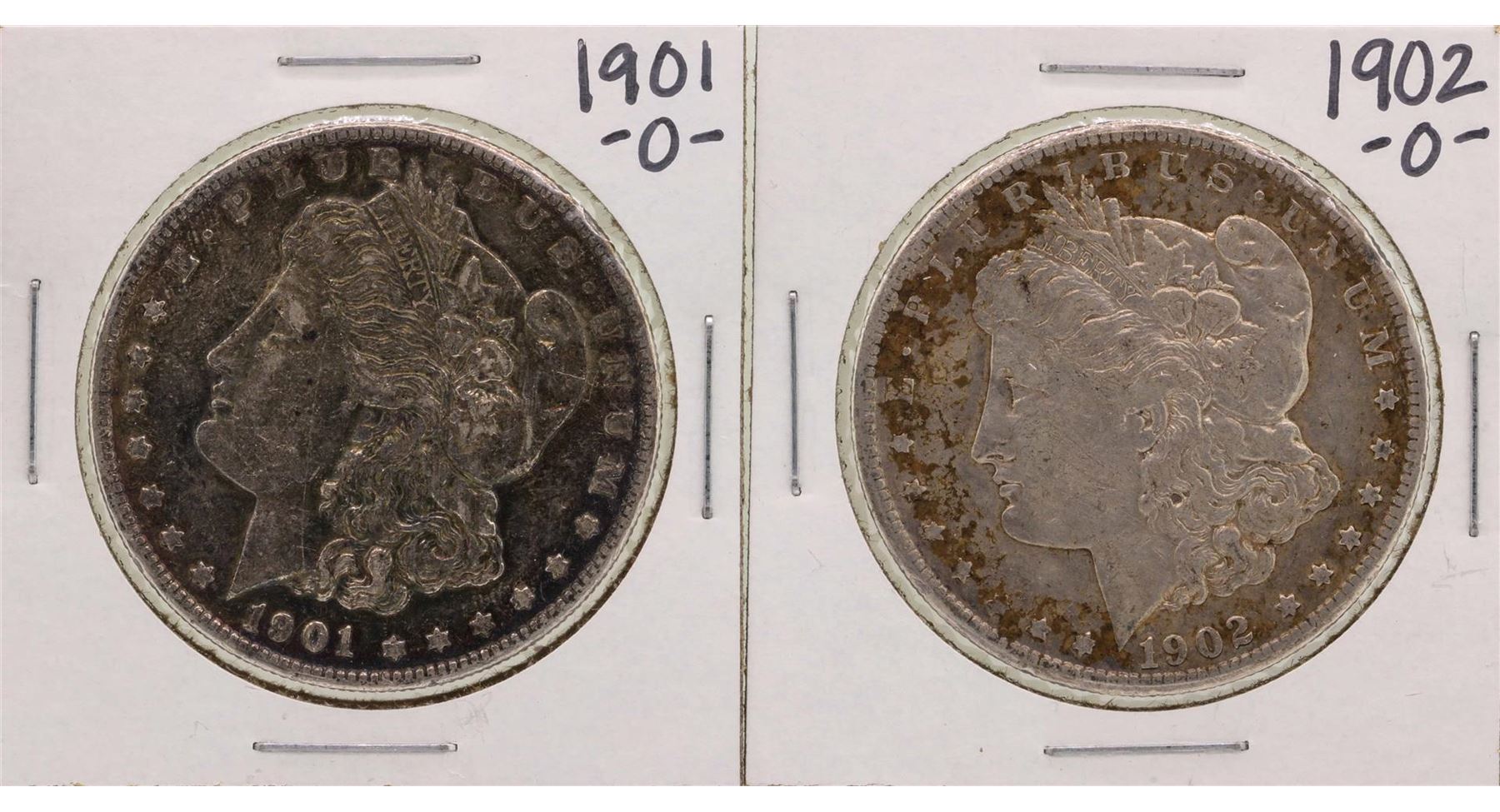 One Lot of 1901-O & 1902-O $1 Morgan Silver Dollar Coins.