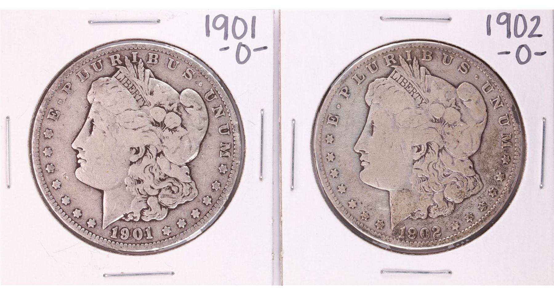 One Lot of 1901-O & 1902-O $1 Morgan Silver Dollar Coins.