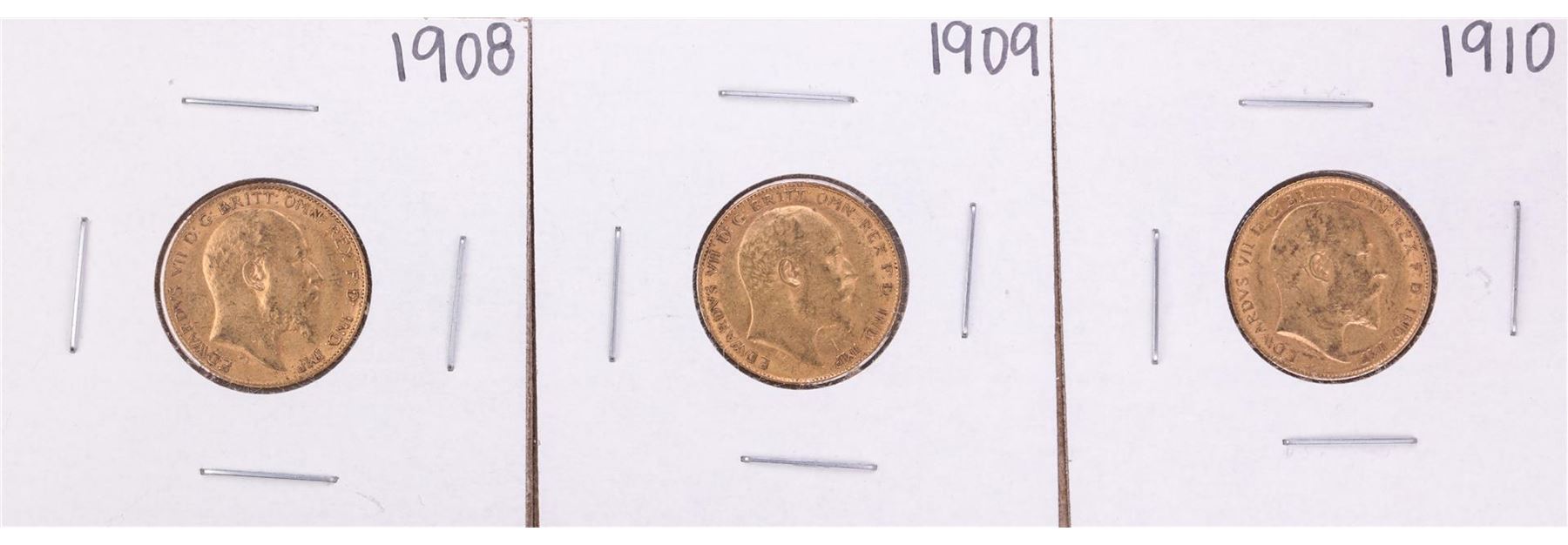 One Lot of 1908-1910 Great Britain Half Sovereign Gold Coins.