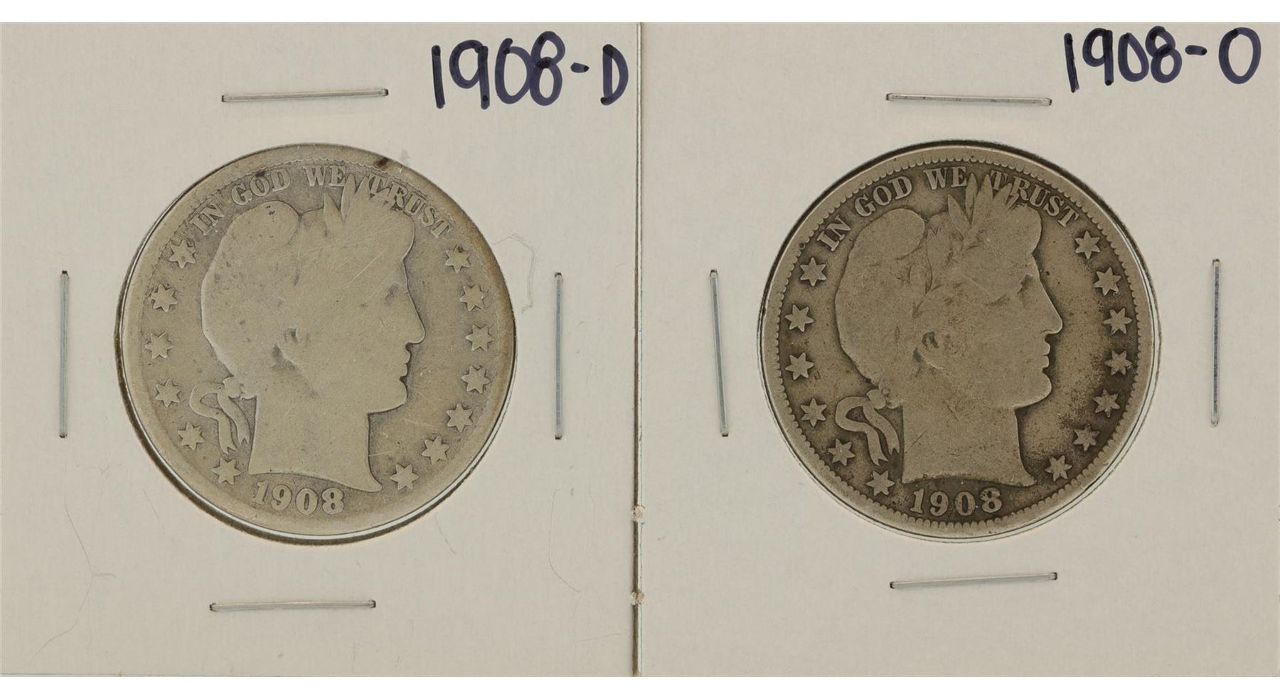 One Lot of 1908-D & 1908-O Barber Half Dollar Coins.