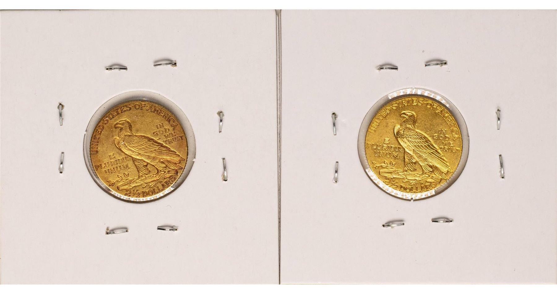 One Lot of 1909-1910 $2 1/2 Indian Head Quarter Eagle Gold Coins.