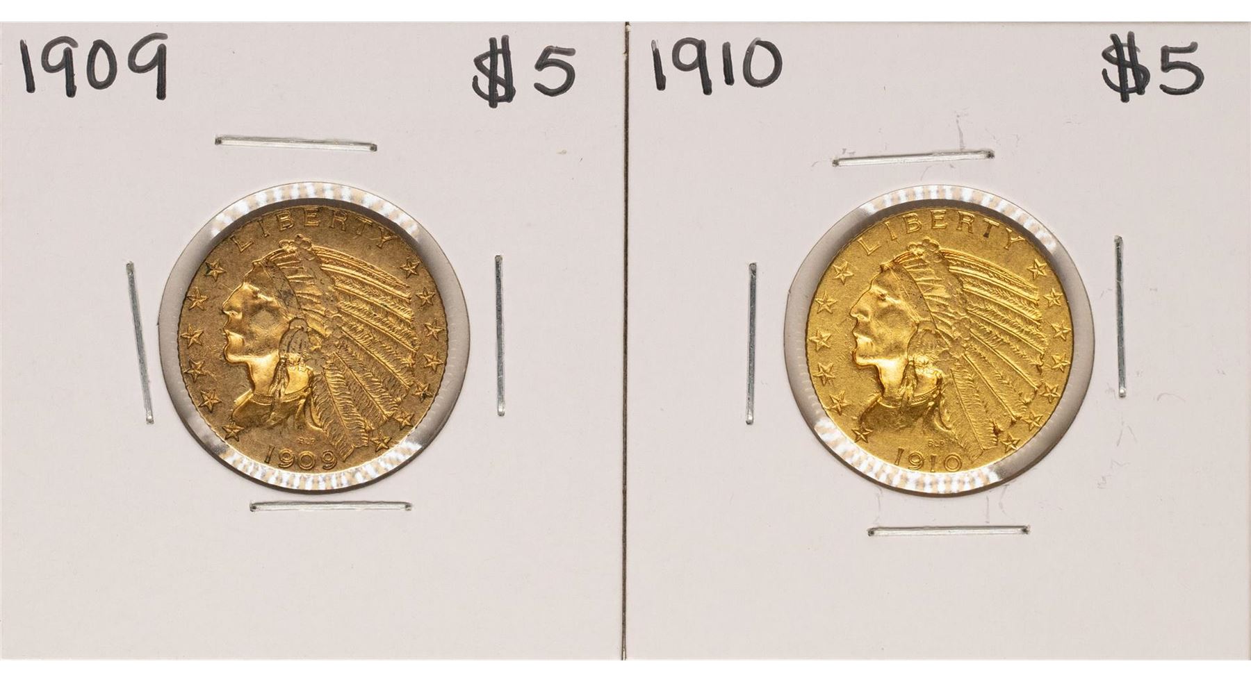 One Lot of 1909-1910 $5 Indian Head Half Eagle Gold Coins.
