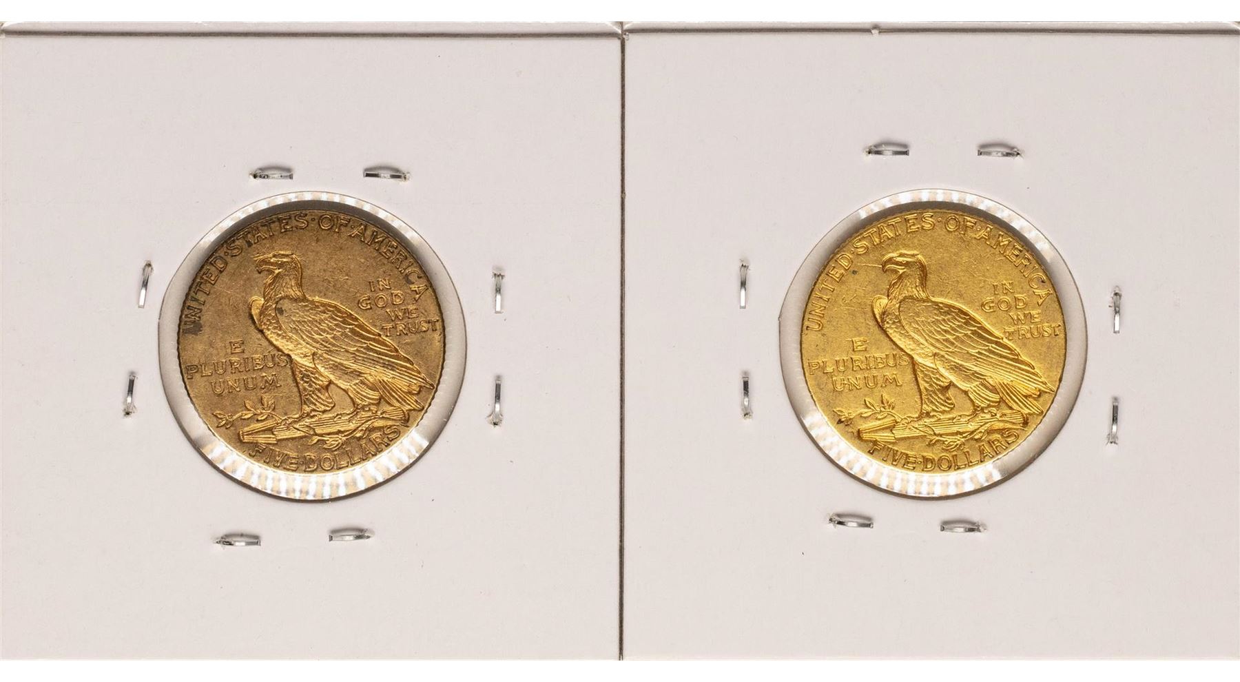 One Lot of 1909-1910 $5 Indian Head Half Eagle Gold Coins.