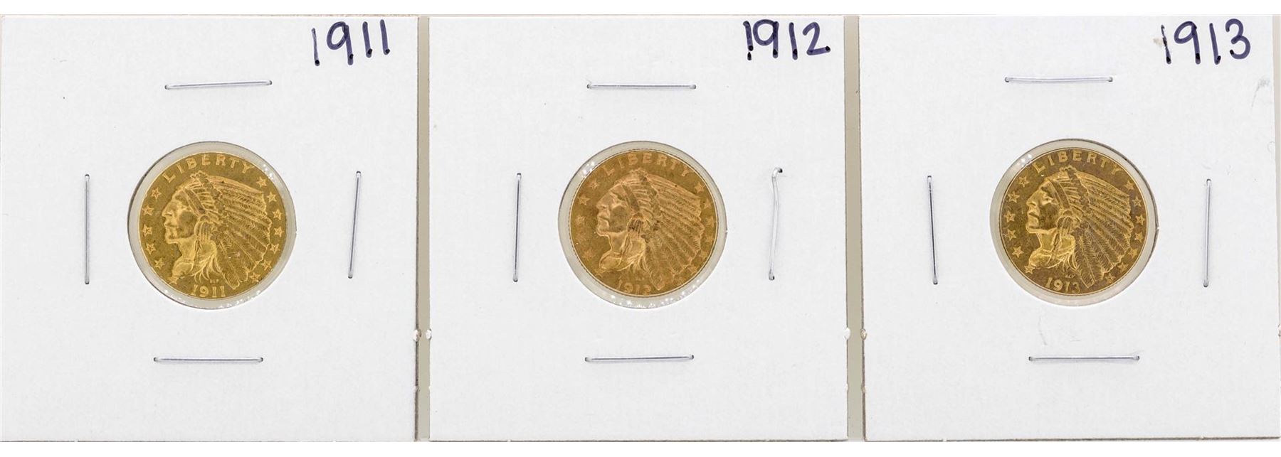 One Lot of 1911-1913 $2 1/2 Indian Head Quarter Eagle Gold Coins.