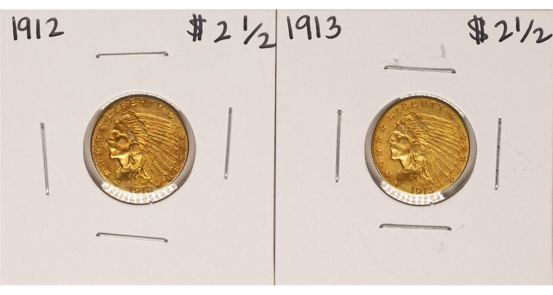 Lot of 1912-1913 $2 1/2 Indian Head Quarter Eagle Gold Coins