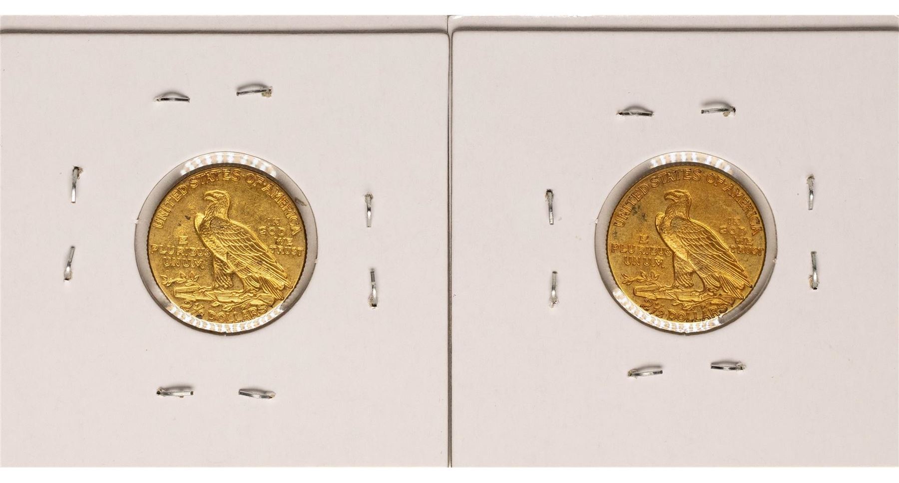 One Lot of 1912-1913 $2 1/2 Indian Head Quarter Eagle Gold Coins.