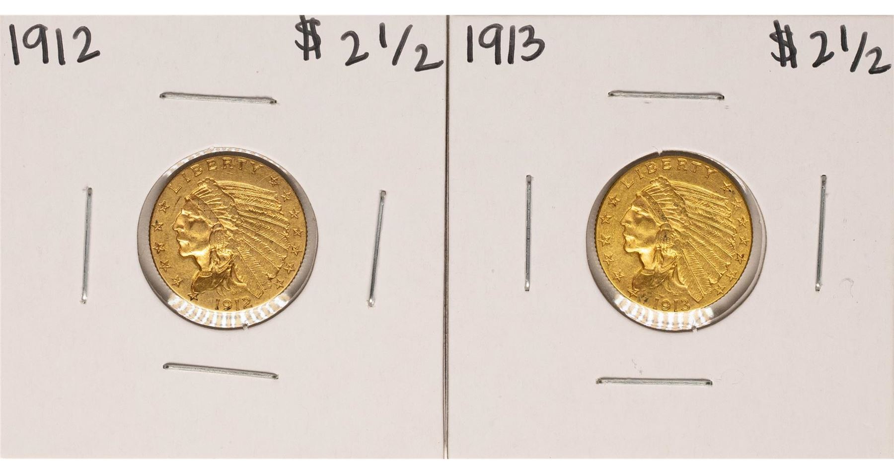 Lot of 1912-1913 $2 1/2 Indian Head Quarter Eagle Gold Coins