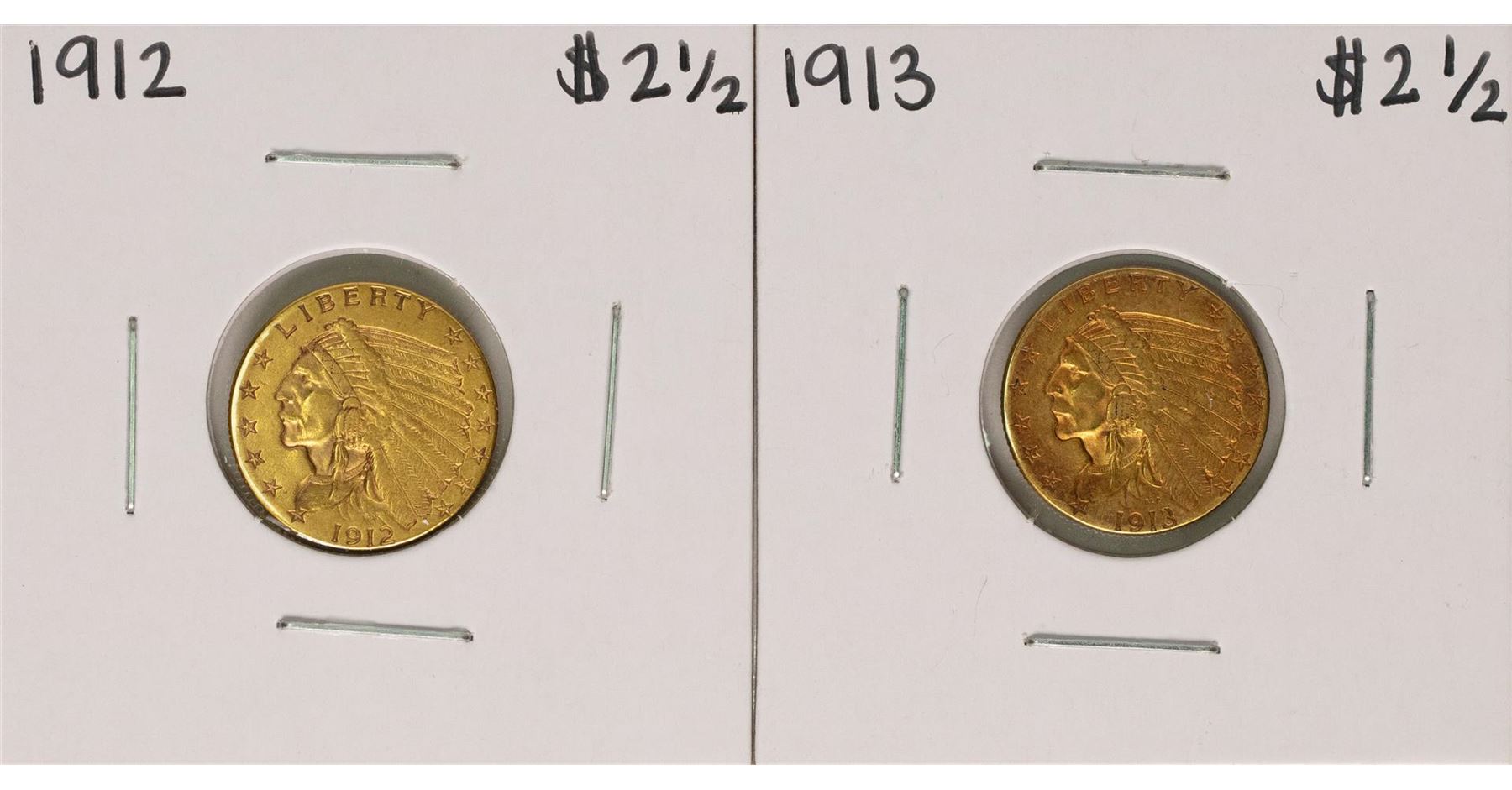 Lot of 1912-1913 $2 1/2 Indian Head Quarter Eagle Gold Coins