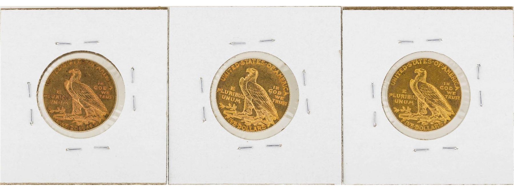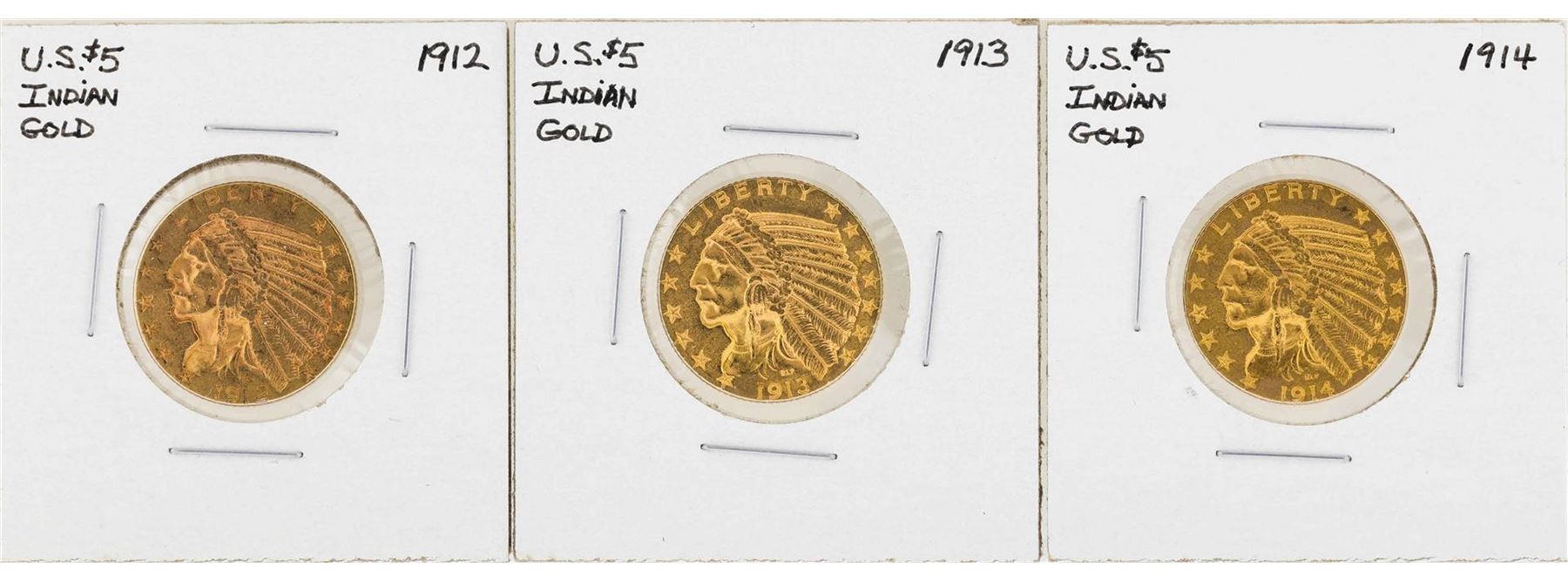 One Lot of 1912-1914 $5 Indian Head Half Eagle Gold Coins.