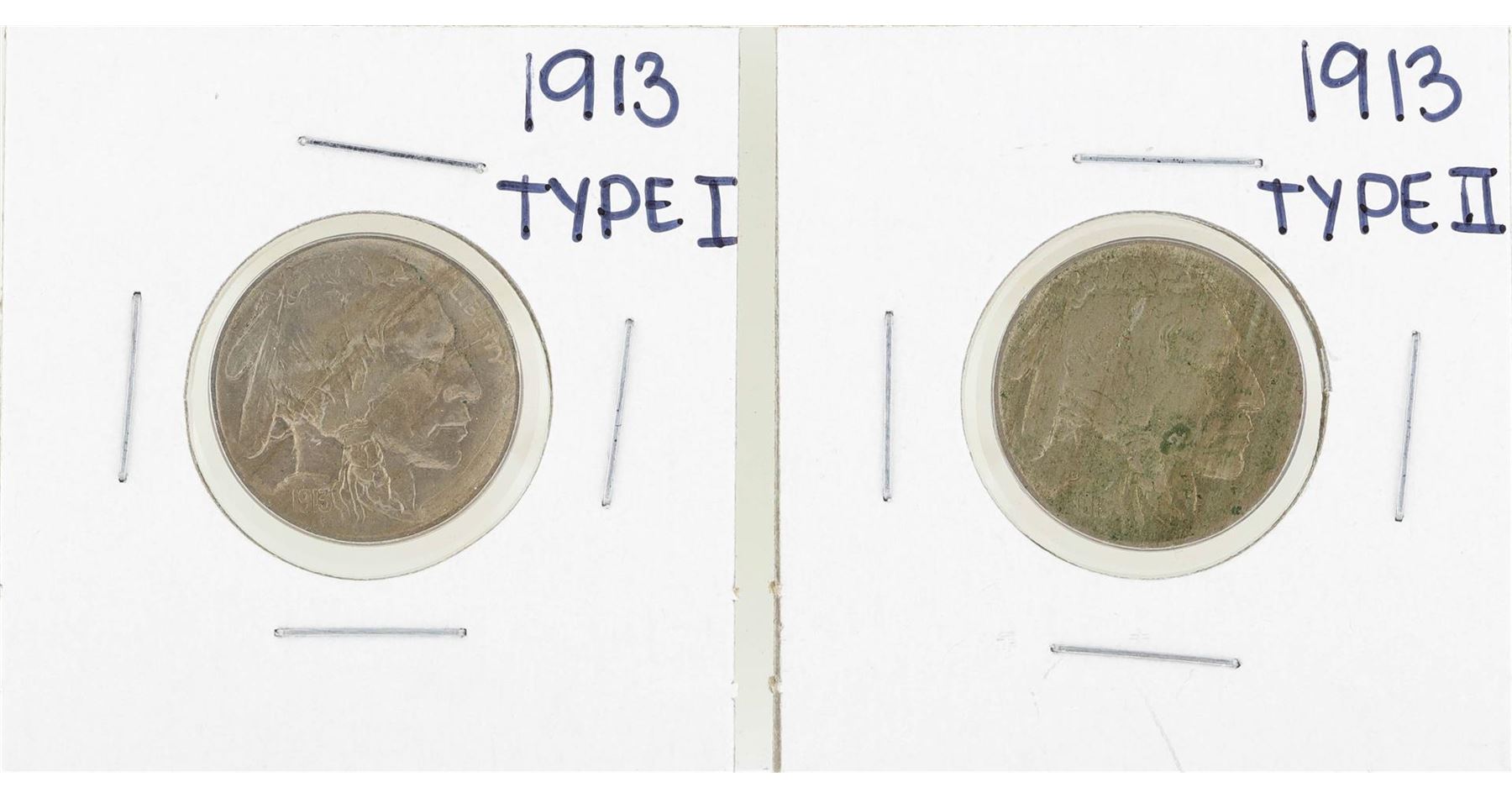 One Lot of 1913 TYPE I & 1913 TYPE II Buffalo Nickel Coins.