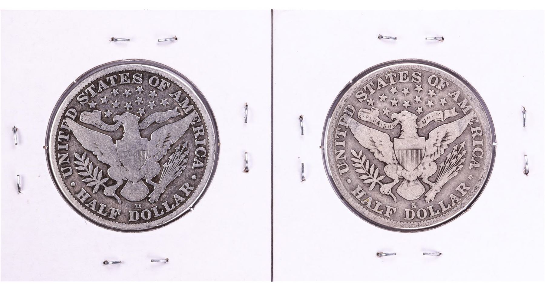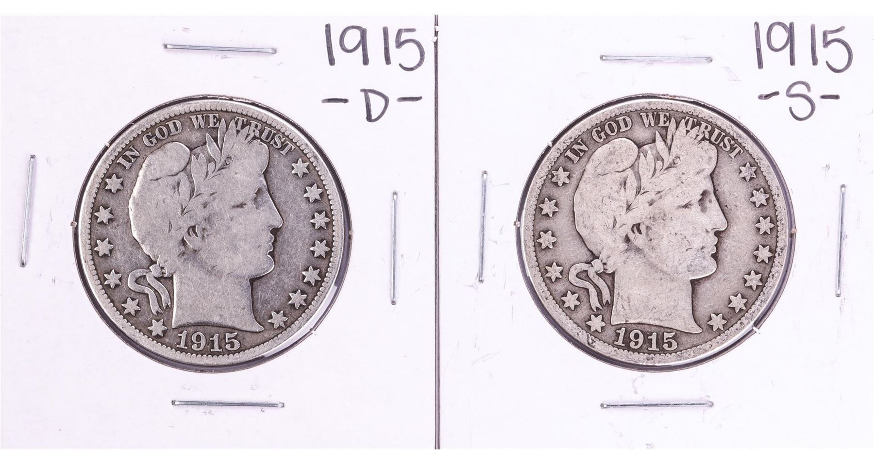 One Lot of 1915-D & 1915-S Barber Half Dollar Coins.