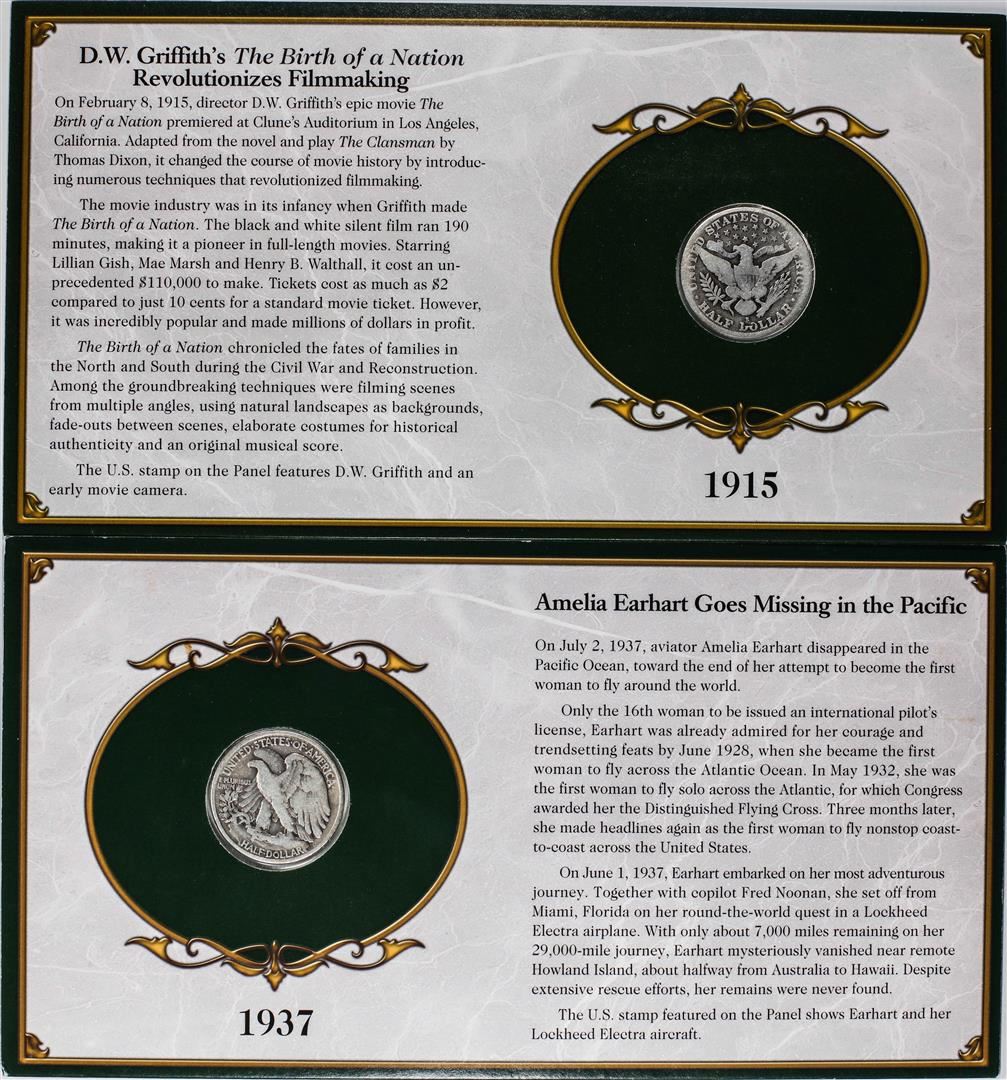 One Lot of 1915-S Barber & 1937 Waking Liberty Half Dollar Coins and Stamp Panels.