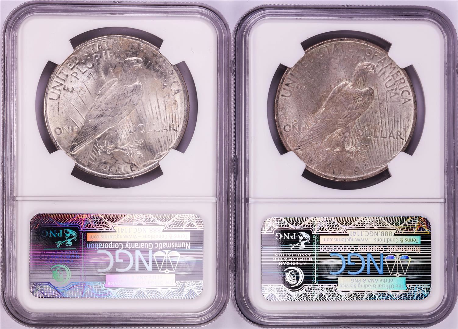 One Lot of 1922-1923 $1 Peace Silver Dollar Coins NGC MS64. NGC Certified.